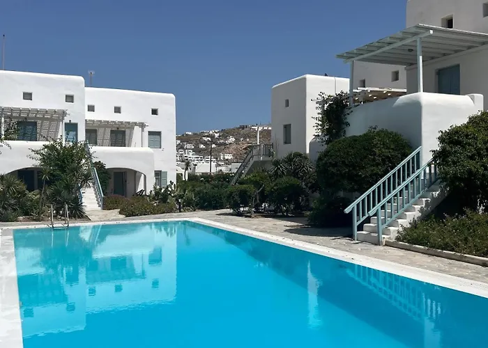 A vendégek a Mikonosz Repuloter repülőteret autóval 10 perc alatt elérhetik. A vendégek elmerülhetnek a kinti úszómedencében.